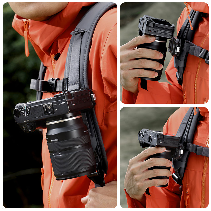 Snap your gear onto your backpack or belt and enjoy hands-free freedom with instant, effortless access to your equipment!