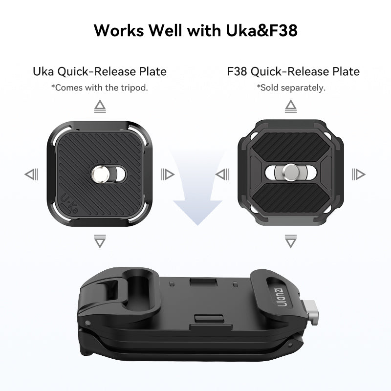 Slide-in design allows for quick installation and removal, seamlessly compatible with Uka and F38 quick-release plates for ultimate versatility.