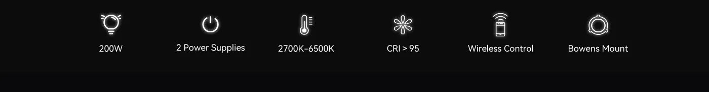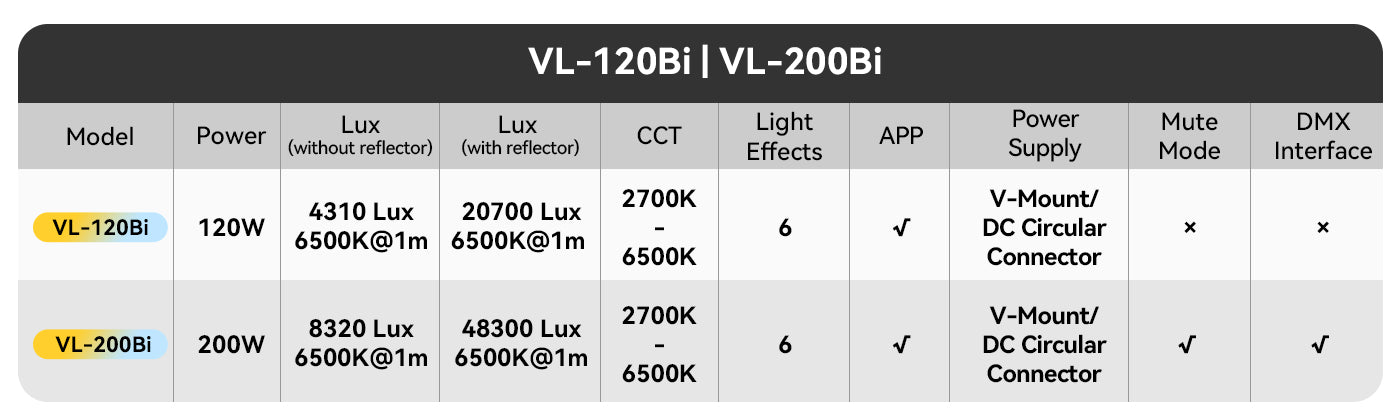 - VL-200Bi 200W Light / 26000mAh V-Mount Battery*2 PCS