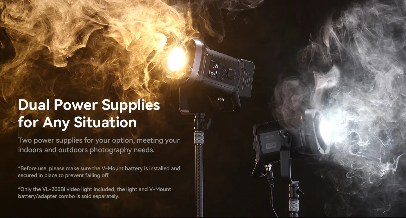 - VL-200Bi lights are sold separately from V-Mount battery/adapter combos.