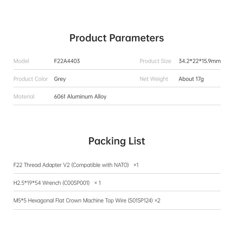 Universal compatibility with F38&F22 quick-release systems enables fast connection to devices without screws, allowing seamless switching between two systems.