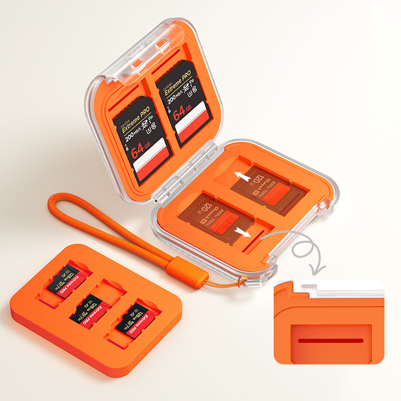 Crafted from a tough PC shell, this card case resists scratches, pressure, and drops, keeping your memory cards safe and secure.