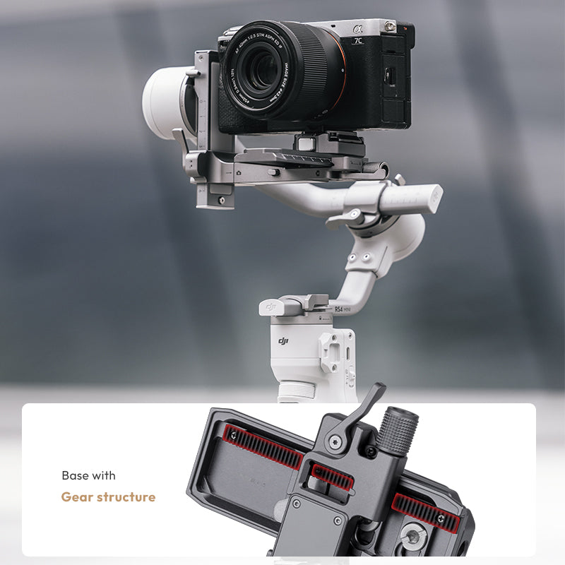 Specifically designed for the DJI RS4 Mini stabilizer, ensuring a precise fit. The built-in gear structure at the base allows for fine-tuned fiont to back adjustments for optimal balance.