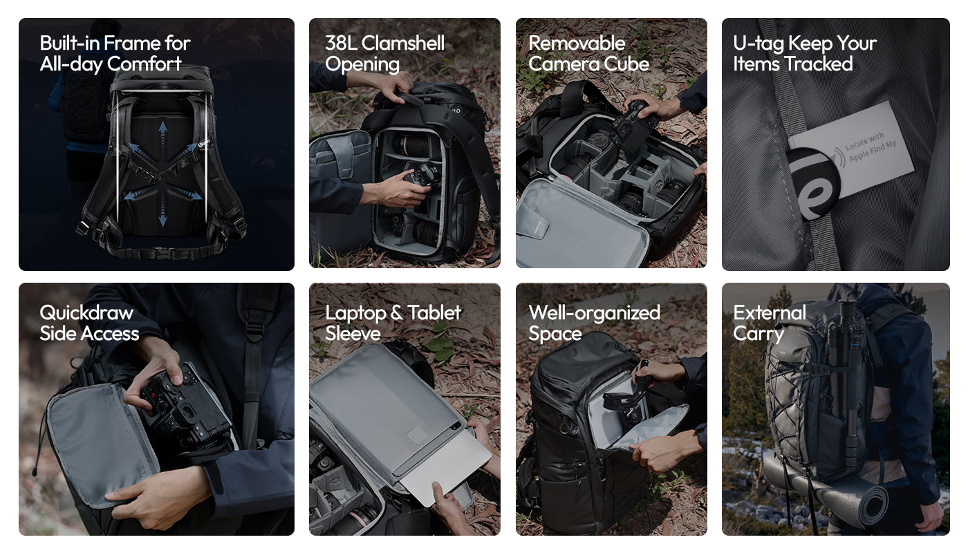 With a wide-opening design and 38L of space, it makes packing and grabbing your gear a breeze—no more digging, just quick access to everything you need for your adventure!