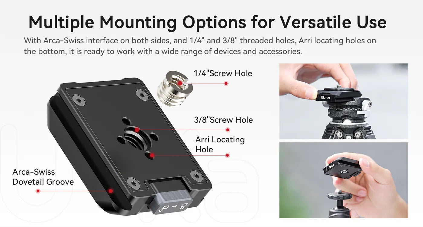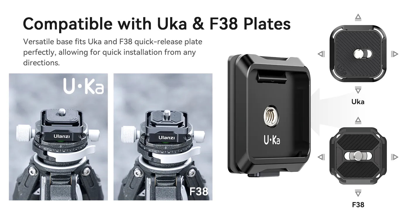 • 4. Versatile Mounting: Compatible with Uka and F38 plates, featuring Arca-Swiss interfaces and multiple threaded holes.