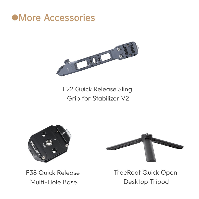Integrated with the F38 Quick Release System, allowing 1 seccond locking between the stabilizer and the quick release plate. No need for repeafted balancing, secure grip with near-zero play.