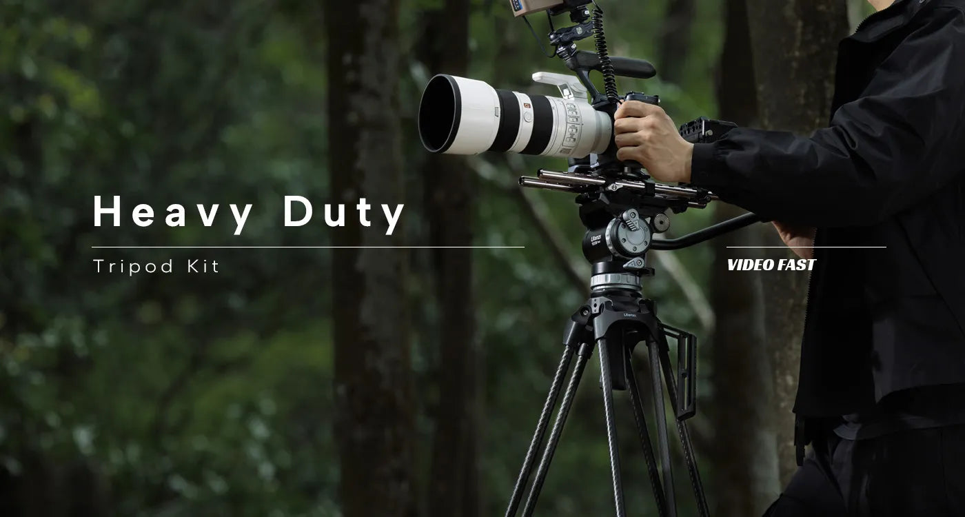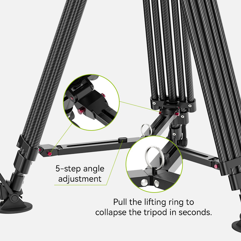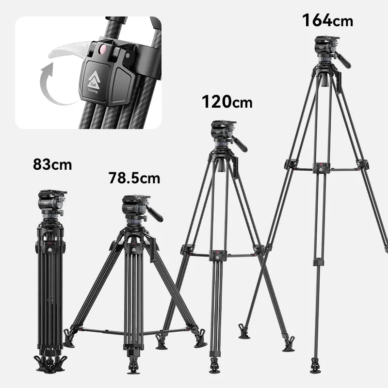 VideoFast is designed for stability with 5-section tubes and a widened joint connection, ensuring high-level steadiness across various shooting environments. Lightweight yet strong, tripods bolster up to 55" (25kg), supporting extensive shooting equipment and long-lens operations. Folds to 34.8"(88.6cm), perfect for on-the-go outdoor travel video shooting with the included bag.