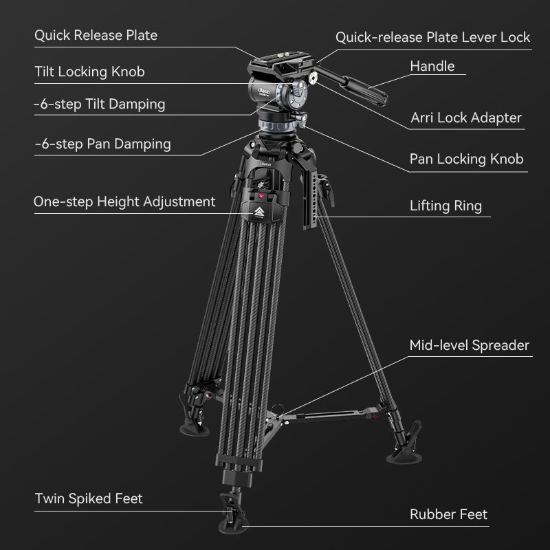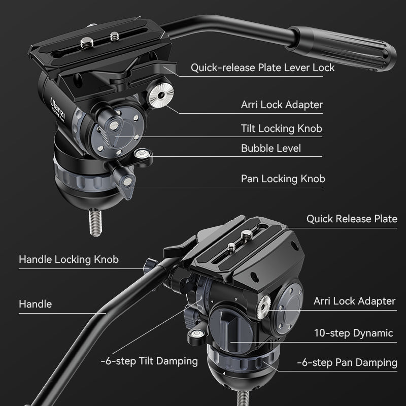 This all-metal video fluid head is firm and stable, with a load capacity of up to 22lb (10kg). The ⌀75mm detachable bowl head helps quick leveling on uneven terrain, aided by the interchangeable non slip rubber feet and steel spikes and a built in bubble level. It effortlessly supports professional-grade equipment, providing you with a rock-solid foundation for your artistic endeavors.
