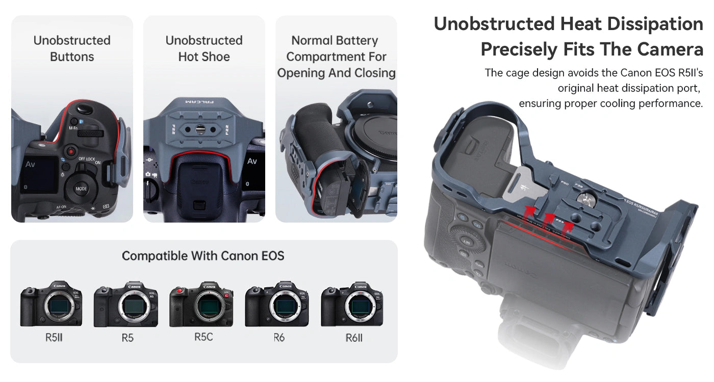 Removable side panels, with a circular arc design that fully preserves the camera's original ergonomic comfort.