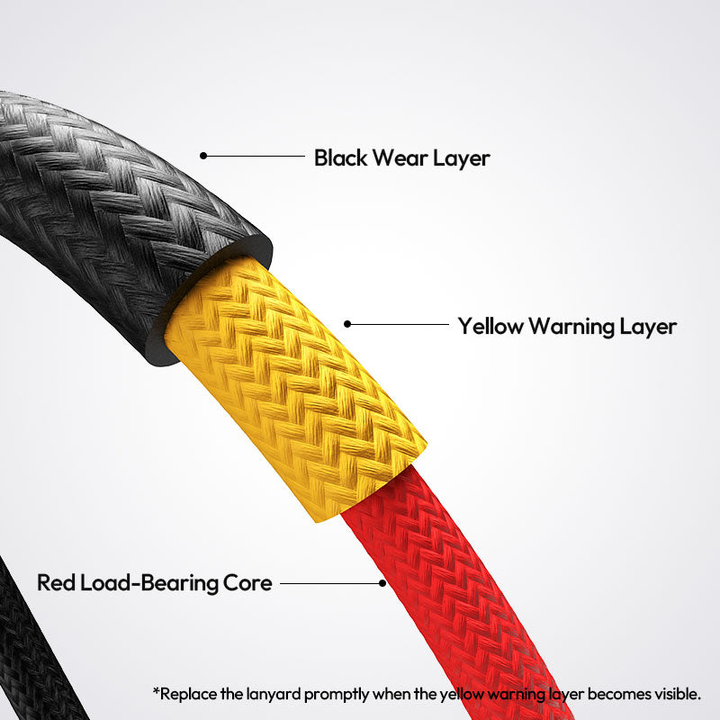 *Replace the lanyard promptly when the yellow warning layer becomes visible.