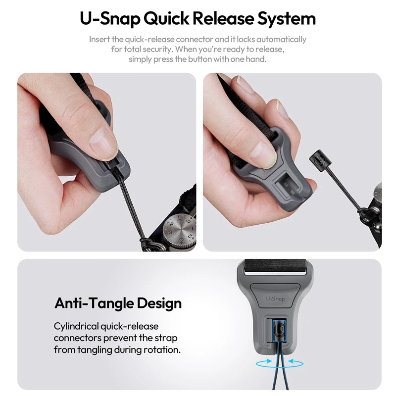 - Anti-Tangle Design: Cylindrical quick-release connectors prevent the strap from tangling during rotation.