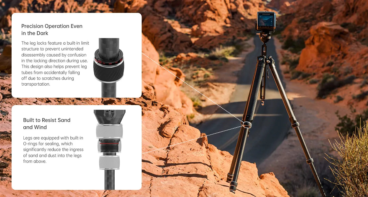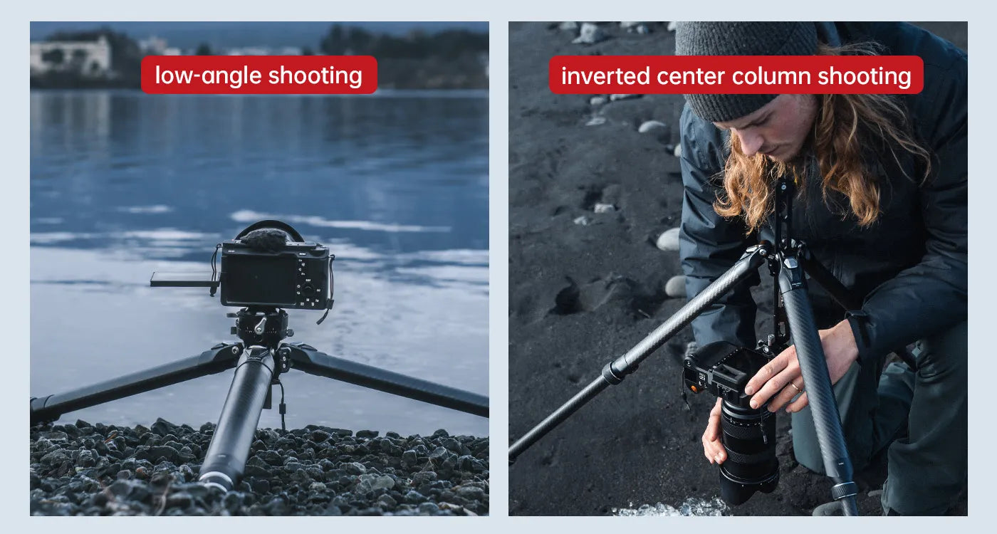 La colonne centrale initiale à dégagement rapide avec conception à loquet papillon permet un retrait sans outil par le bas, passant instantanément à la prise de vue à faible angle, garantissant une expression créative fluide et sans entrave.