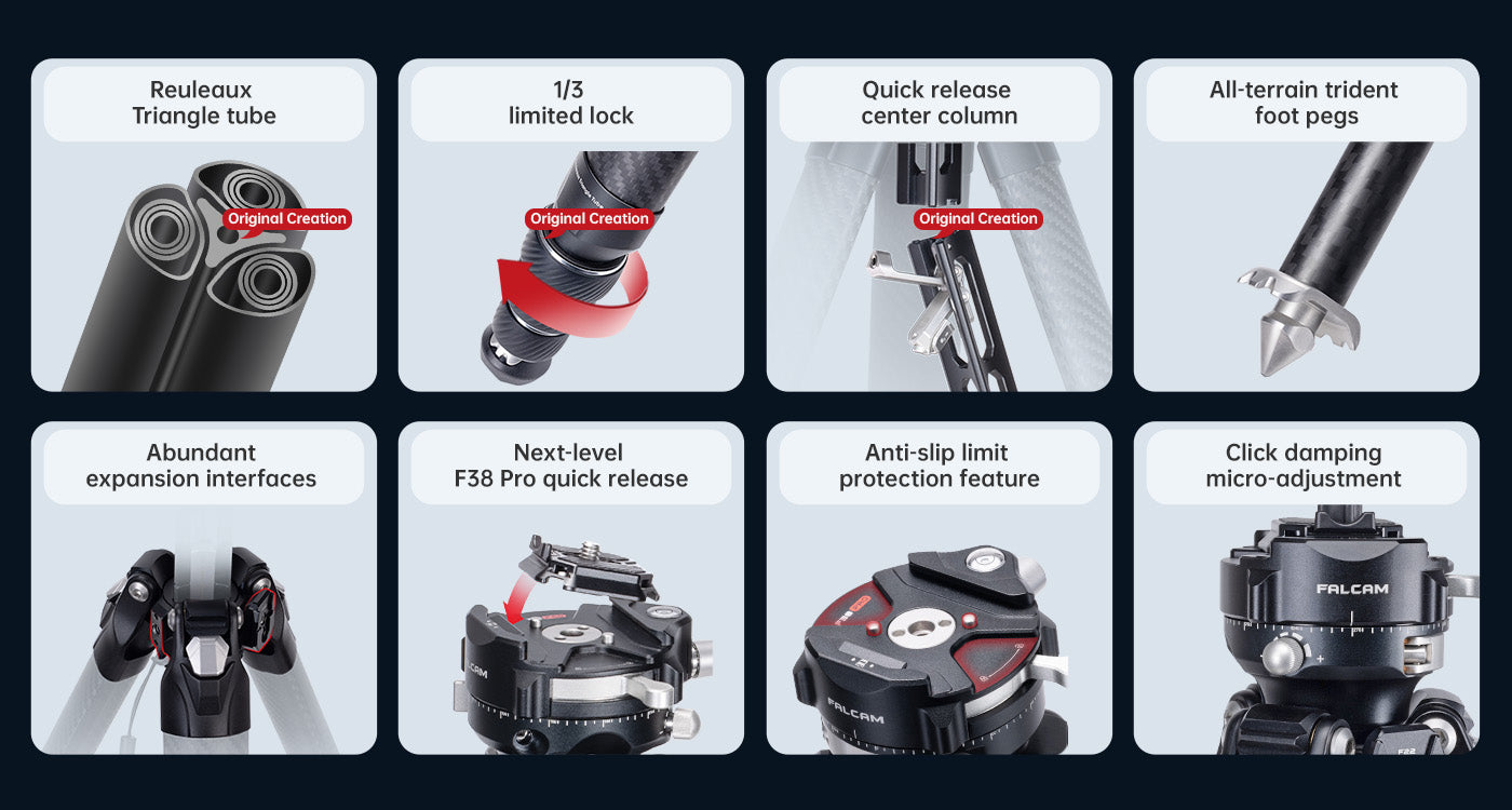 L'équipe R&D de FALCAM a soumis le produit (série TreeRoot) à plus d'un millier de tests rigoureux sur le terrain et a collaboré étroitement avec des utilisateurs expérimentés de trépieds et des ambassadeurs FALCAM. Après une analyse approfondie de nombreux modèles de rotules, nous avons créé une solution hautement perfectionnée, adaptée aux photographes, dont chaque détail mérite une analyse approfondie.