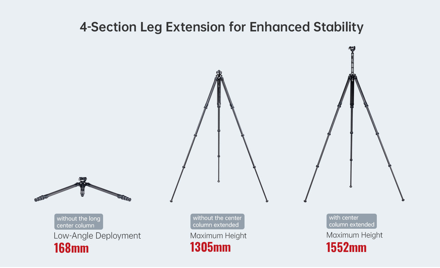 Chaque pied s'ajuste sur 3 positions, répondant à différents angles de prise de vue pour des besoins de photographie flexibles.