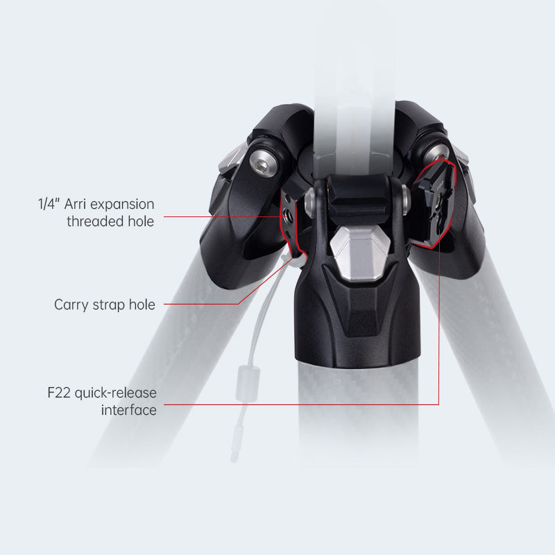 Équipé d'interfaces à dégagement rapide F22 , d'un trou fileté d'expansion Arri 1/4", de trous pour sangle de transport et d'une compatibilité avec la boucle à dégagement rapide Maglink .