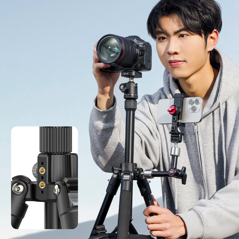 La rotule permet une rotation fluide à 360° et des transitions portrait-paysage sans effort, vous assurant ainsi de capturer la photo parfaite à chaque fois.