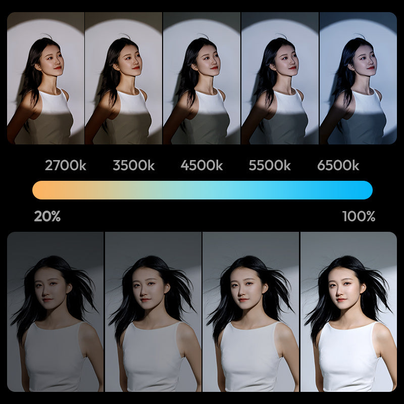 Adjust seamlessly between 2700K and 6500K, and fine-tune brightness for dynamic lighting effects.