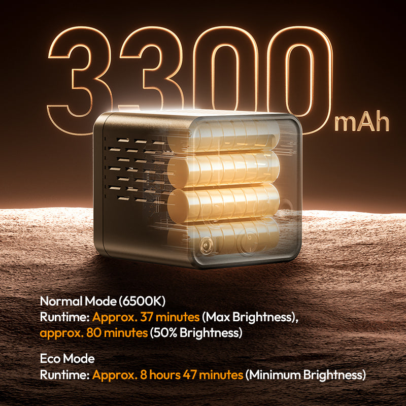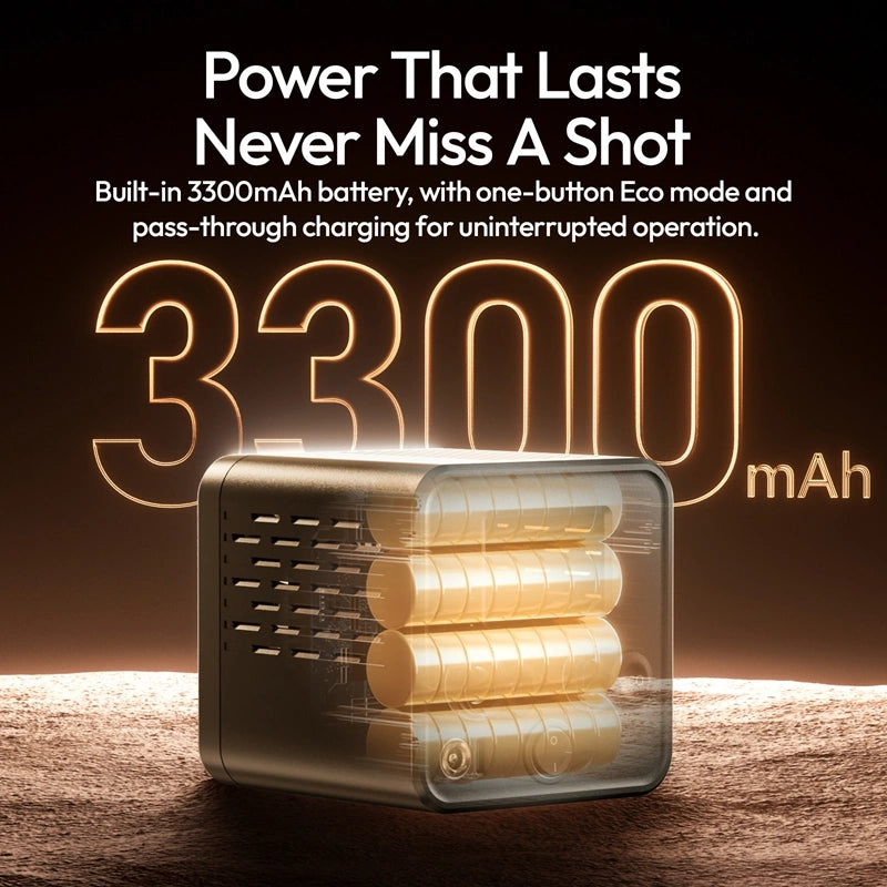 Built-in 3300mAh battery, with one-button Eco mode and pass-through charging for uninterrupted operation.