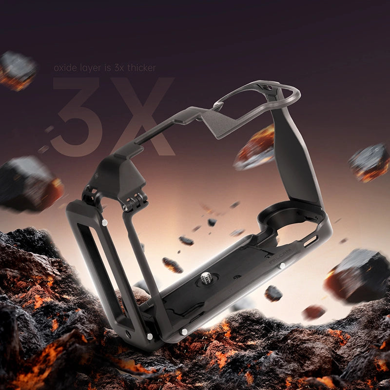 Crafted from high-strength 6061 aluminum with hard anodizing to effectively protect your camera's original finish. Its oxide layer is 3x thicker than standard camera cages.