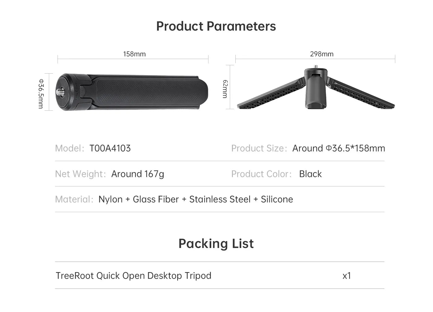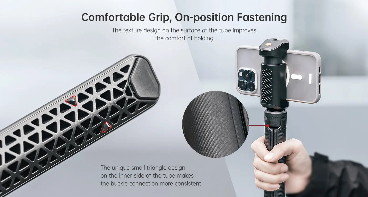 Equipped with the F38 Quick Release System, it unlocks smoother and more versatile usage. The textured surface ensures a comfortable grip, while its lightweight, portable design (weighing just 167g and measuring 15.8cm when stored) allows for easy one-handed handling. Elevate your photography and videography with the TreeRoot tripod.