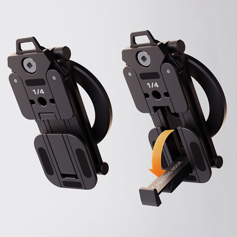 Hidden hook for mantis mode, allowing you to attach it to monitors, chair backs, doors, railings, and more for unique shooting angles.