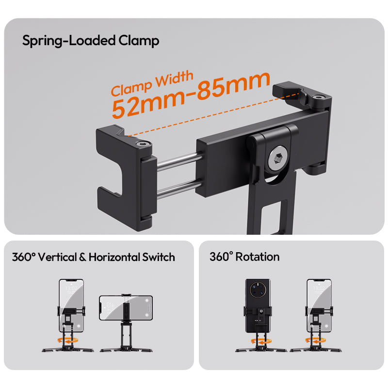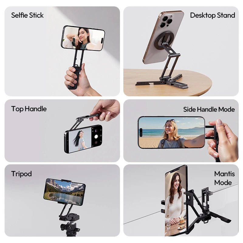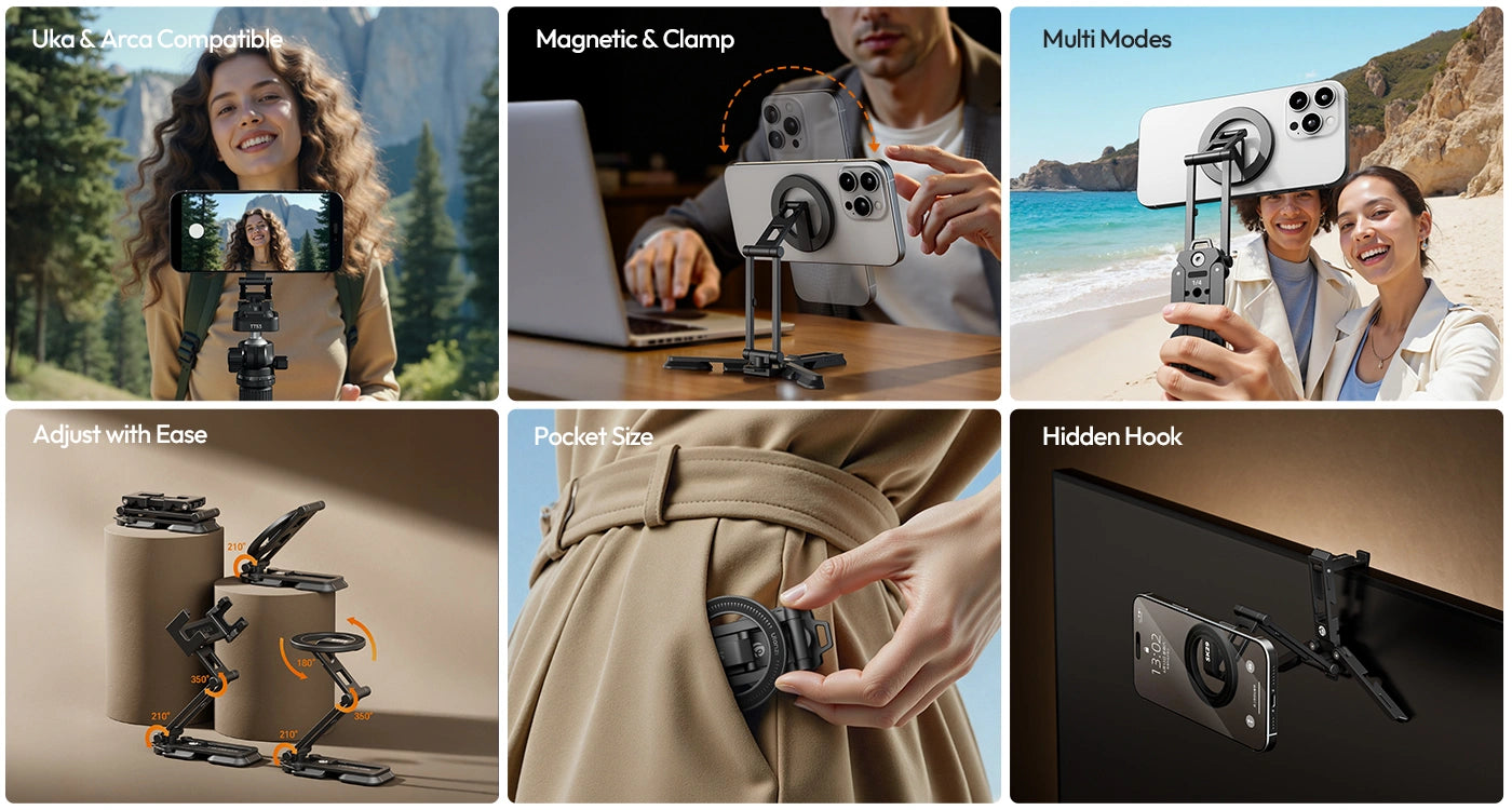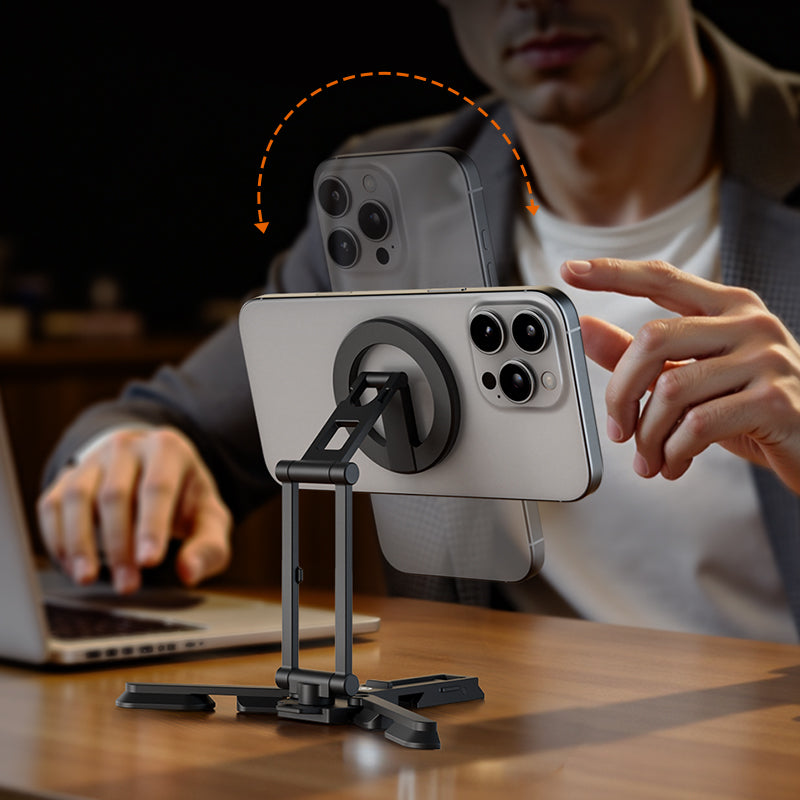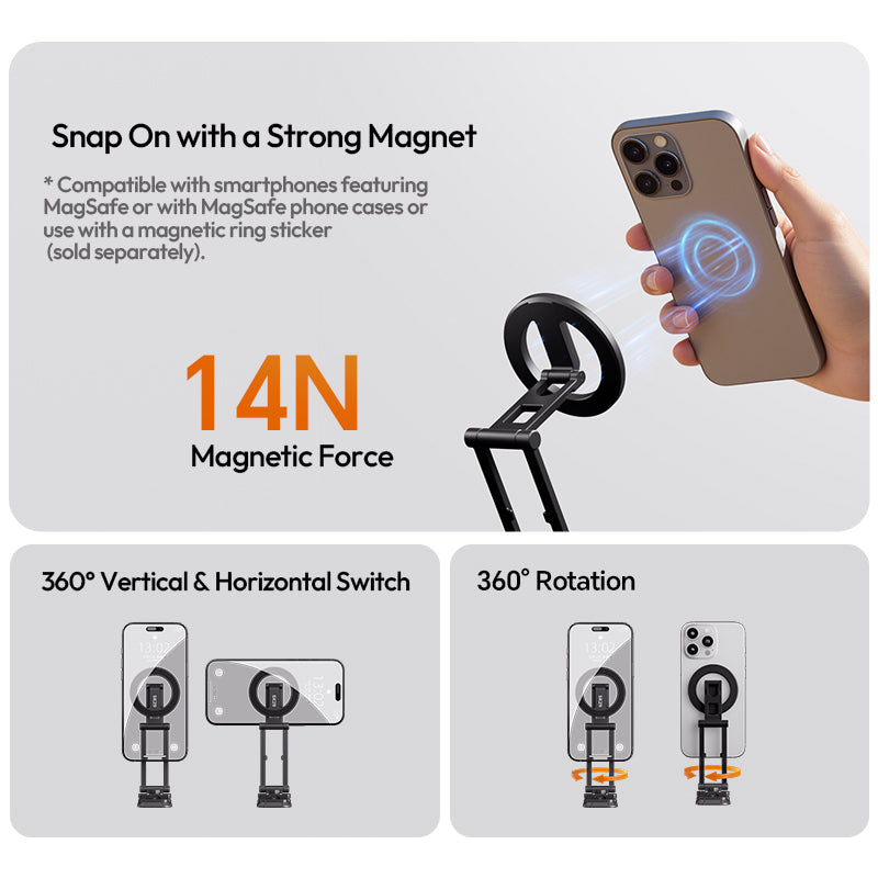 Choose between MagSafe or clamp style. Enjoy smooth 360° rotation for seamless switching between vertical and horizontal shots.