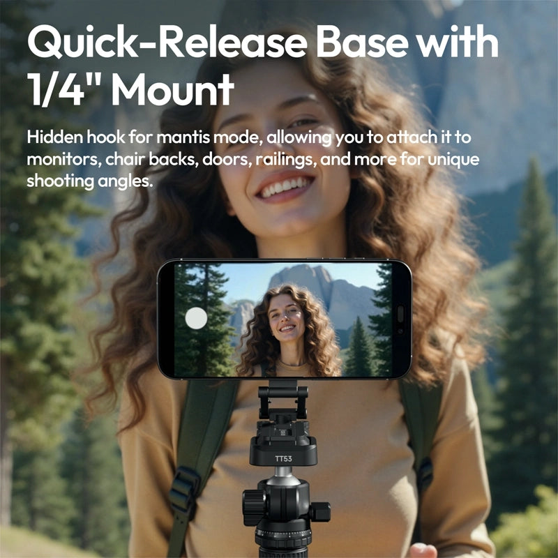 *When using the mantis mode, ensure the hook thickness is ≤32mm. the tripod should be fully supported, and avoid use on moving objects like car windows.