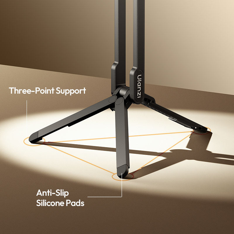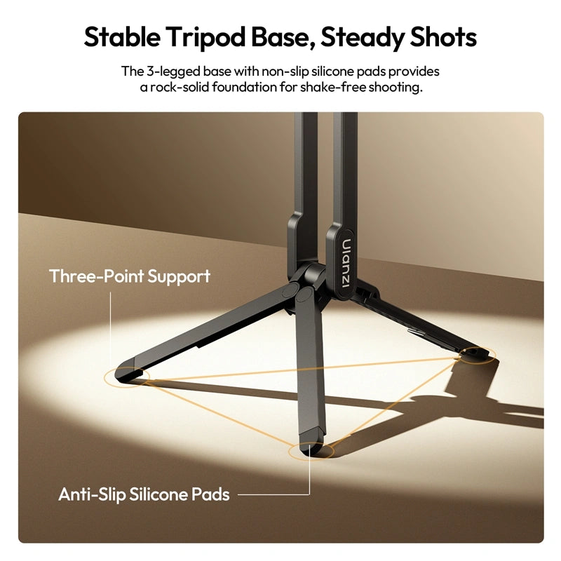 The 3-legged base with non-slip silicone pads provides a rock-solid foundation for shake-free shooting.