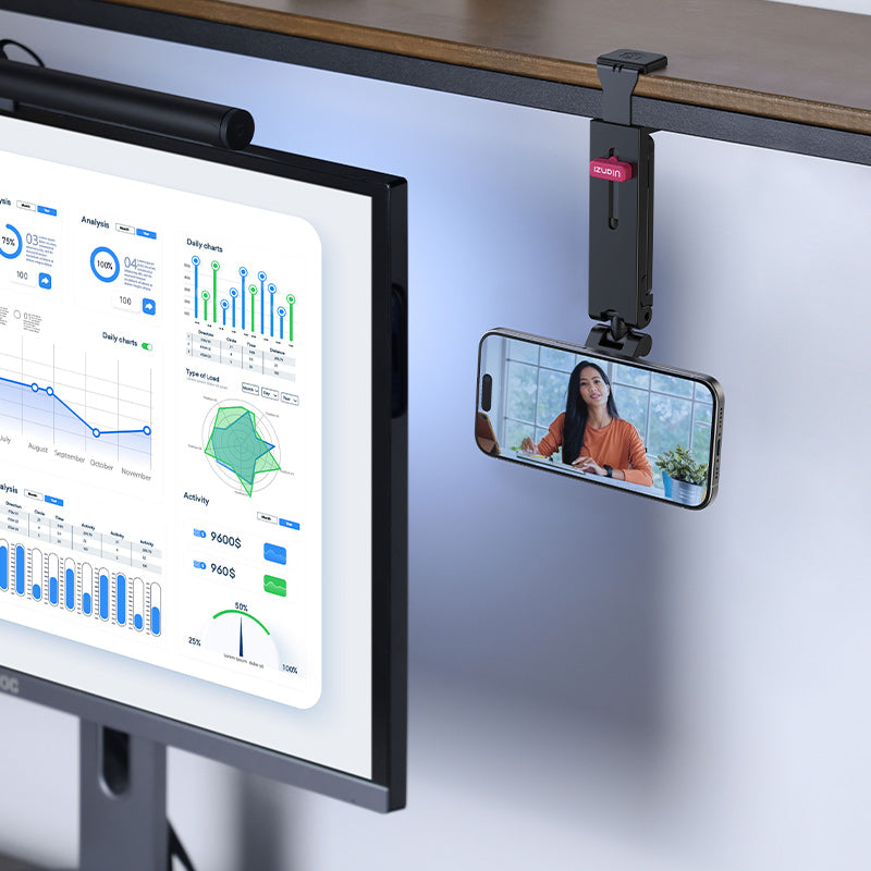 Hang it on monitors, chair backs, doors, or railings. Explore new creative shooting angles beyond the desktop.