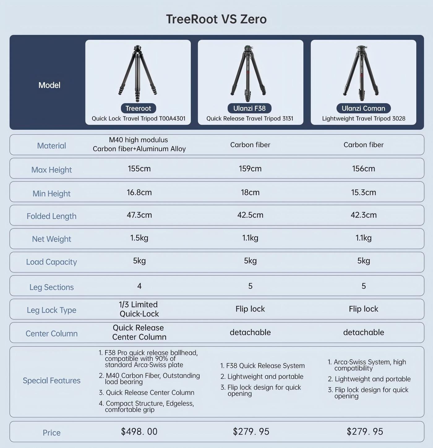 The tripod is crafted from military-grade M40 high modulus carbon fiber, offering over 60% more stiffness compared to T300. This advanced material provides superior tensile strength and bending resistance, ensuring reliable support for your creative work and sharp image capture.